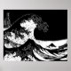 Great Wave off Kanagawa Black and White Poster. Vintage Japanese art