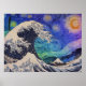 Unique collages of The Great Wave by Katsushika Hokusai (1760- 1849) and The Starry Night with original color touch by Vincent van Gogh (1853 – 1890).