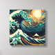 An iconic woodblock print by Katsushika Hokusai shows a massive wave with Mount Fuji visible in the background. It is celebrated worldwide for its striking composition, intricate detail. It is being reproduced in 4 different styles.