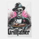 • Eye-catching graphic of a skeleton "Grillfather" grilling meats behind his fancy backyard grill