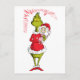 This heartwarming illustration captures the moment the Grinch's heart grew three sizes! The full-body image shows the tall Grinch dressed in his fuzzy red Santa suit, gently holding the tiny Cindy Lou Who, who is sweetly dressed in a matching little Santa cap and pink outfit, holding a candy cane. The Grinch is genuinely smiling (not scheming!), and red lines radiate from his head, illustrating his newfound Christmas joy. It's the perfect image for celebrating the true spirit of the holidays!