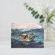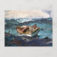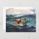 A fine art postcard with the painting, The Gulf Stream (1899), by the American artist from the realism movement Winslow Homer (1836-1910). A seascape in the Carribean with sharks swimming in the water surrounding a man struggling against the waves in a fishing boat.