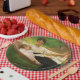 This design features a painting by the American Impressionist artist Joseph DeCamp (1858–1923). It shows a woman and two children relaxing on a hammock during summer. The woman is the artist's wife Edith, the young girl is his daughter Sally and the baby boy is his son Ted. The women is smiling gently at the viewer, while the young girl looks bored and the baby boy is sleeping. The hammock is located in a lush garden with green trees and grass. The original artwork was painted by Joseph DeCamp in 1895.