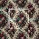 In The Hanging Gardens of the Arcane, cascades of roses, dahlias, and peonies spill from ornate scrolls, entwined with the silent grins of weathered skulls. The blooms drip in shades of wine, blush, and shadowed jade, suspended in an opulent waltz between beauty and decay. Ideal for upholstery, drapery, or garments steeped in dark romanticism.