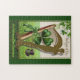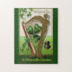 11” x 14” jigsaw puzzle with a vintage image of the golden Harp of Erin adorned with a green bow and a pretty green shamrock. A black top hat lies on the ground beside it with a green hat band. See the entire St. Patrick’s Day Puzzle collection under the HOME category in the HOLIDAYS section.