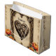The heartbeat of the ancient gods: A magical Celtic frame. An ornate, Celtic-inspired frame with complex knot patterns in gold and brown tones. A spade-shaped ornament with a knot is located at the top, and a heart-shaped knot is located at the bottom, flanked by vibrant orange and red flowers. The design combines tradition, strength, and vitality.