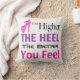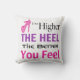 Pillow with a high heel and the words "The higher the heel the better you feel".