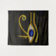 Tapestry with the Eye Of Horus symbol of protection in Ancient Egypt for your home or office wall. This tapestry design features the Horus Eye on faded Hieroglyphs and Horus Eyes.