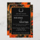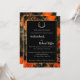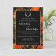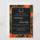 Country orange camouflage wedding invitation with "the hunt is over" and a set of antlers.