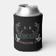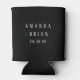 Custom Wedding Can Cooler, Wedding Favour - The Hunt is Over antlers banner design with personalised couple's initials, the bride and groom's names, wedding date, and location.