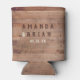 Custom Wedding Can Cooler, Wedding Favour - The Hunt is Over antlers banner design with personalised couple's initials, the bride and groom's names, wedding date, and location.