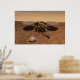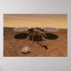 An artist's rendition of the InSight lander operating on the surface of Mars.The lander's science instruments look for tectonic activity and meteorite impacts on Mars, study how much heat is still flowing through the planet, and track the planet's wobble as it orbits the sun.