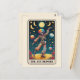 Spread good cheer and celebration with 'The Joy Bringer' Tarot-inspired art postcard. This incredibly unique illustration features a dancing skeleton wearing a bold, rainbow clown suit against a vivid, starry night sky.
