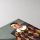 This design features a painting by the Italian artist Antonio Donghi (1897–1963). It shows a traditional juggler wearing a harlequin's motley costume that features black diamonds in a tessellated pattern with red and yellow triangles. The juggler is resting in his private tent at the circus. He seems somewhat sad or just tired and weary. The balls that he uses to juggle are lying on the floor in front of him. His hands appear to be very big and they are resting on his knees. The original artwork was painted by Antonio Donghi in 1926.