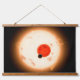 Artist's concept of the Kepler-16 system, showing the binary star being orbited by Kepler-16b. Kepler-16 orbits a slowly rotating K-dwarf that is very active with numerous star spots. Its other parent star is a small red dwarf. The planetary orbital plane is aligned within half a degree of the stellar binary orbital plane.