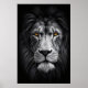 Striking portrait of a lion with piercing yellow eyes locked on the camera, exuding power, majesty, and a commanding presence. The details of the mane and fur highlight its wild strength.