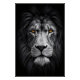 Striking portrait of a lion with piercing yellow eyes locked on the camera, exuding power, majesty, and a commanding presence. The details of the mane and fur highlight its wild strength.