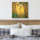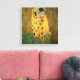 The Kiss (Lovers) was painted by the Austrian Symbolist painter Gustav Klimt between 1908 and 1909, the highpoint of his "Golden Period", when he painted a number of works in a similar gilded style. A perfect square, the canvas depicts a couple embracing, their bodies entwined in elaborate robes decorated in a style influenced by both linear constructs of the contemporary Art Nouveau style and the organic forms of the earlier Arts and Crafts movement. The work is composed of oil paint with applied layers of gold leaf, an aspect that gives it its strikingly modern, yet evocative appearance. The painting is now in the Österreichische Galerie Belvedere museum in the Belvedere palace, Vienna, and is widely considered a masterpiece of the early modern period. It is a symbol of Vienna Jugendstil—Viennese Art Nouveau—and is considered Klimt's most popular work.