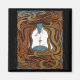 In this vintage art two women share a kiss, the art shows just their heads with their eyes closed, heads turned a bit with their hair stylised wildly mixed flowing both above and below their heads. Done in blues and browns primarily.