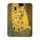 The Kiss was painted by the Austrian Symbolist painter Gustav Klimt between 1907 and 1908. The canvas depicts a couple embracing, their bodies entwined in elaborate robes decorated in a style influenced by both linear constructs of the contemporary Art Nouveau style and the organic forms of the earlier Arts and Crafts movement. The work is composed of oil paint with applied layers of gold leaf, an aspect that gives it its strikingly modern, yet evocative appearance.