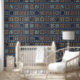 This isn't merely décor; it's a visual incantation. The pattern features a meticulous, interlocking grid of profound symbols drawn from the enigmatic Etruscan civilisation. Each tile in this sophisticated mosaic contains stylised solar wheels, archaic forms, and mesmerising geometric markers—a silent, perpetual narrative from a civilisation that shaped Rome itself. The rich, muted colour palette of terracotta, deep indigo, ochre, and slate blue lends your space the hallowed weight of history.