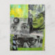 A mixed media collage made and photographed by Angelandspot in the year 2026 with vintage images from a magazine from 1968 on a colorful green and yellow background collage of various papers painted over to unify them before making the collage on top of that layer. The lady was injured in a car wreck in the story that was told and then I found some doctor's eyes in the same magazine from a different story so I combined them into a collage.