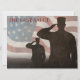 In honour of our fallen members of the armed forces. Saluting soldiers with the American flag in the background.