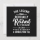 If you are retired or retiring soon you're sure to love this funny retirement design featuring the text: The legend has officially retired, if you want to talk you'll be charged a consulting fee.