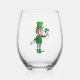 The Leprechaun holds a shamrock in his hand and wishes good luck.