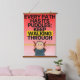 A motivational tapestry design featuring the quote, "Every path has its puddle; keep walking through." The artwork blends an inspiring message with a visually striking scene of a misty pathway, where puddles reflect a golden sunrise, symbolizing resilience and perseverance. The typography is elegantly hand-brushed with a modern touch, harmonizing with a serene color palette of blues, grays, and warm golds. Perfect for adding a touch of inspiration to any space—ideal for home décor, offices, or meditation rooms.