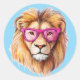 The Lion with Pink Glasses Blue Background Classic Round Sticker