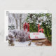 Get well soon postcard featuring a snow covered red bridge crosses over a small frozen pond on a cold winter snow day at a botanical park in Springfield Missouri, United States. Looking for more prints or products? Feel free to visit my store: http://www.zazzle.com/timelessmomentsphtgy
