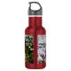 Water bottle featuring a snow covered red bridge crosses over a small frozen pond on a cold winter snow day at a botanical park in Springfield Missouri, United States. Looking for more prints or products? Feel free to visit my store: http://www.zazzle.com/timelessmomentsphtgy