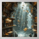 This artwork evokes the harmony of nature and literature, the enchantment of floating archives, and the serenity of magical libraries.