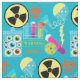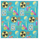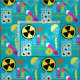 If you've ever wondered what the laboratory of the mad scientist looks like, this is it! Mad scientist theme fabric with a sky blue background, jars of eyeballs, lightning bolts, warning and toxic signs, beakers, test tubes, and lots of bright colours!