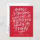 Send magical holiday greetings to friends and family with our festive non-photo holiday postcard. The phrase "The magic of Christmas never ends, its greatest gifts are family and friends" is displayed in a white hand-lettered script with a red background. Personalise the front of the cute holiday postcard by adding your name and the year. The postcard reverses to feature your return address and custom message.