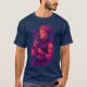 I give wanted to give this a 4 instead of a 5 because these Basic DARK T0shirts run unexpectedly SLIM or Narrow. Which is great if you do not have a potbelly, but I have a paunch. It isn't the shirt's fault that I've got a beer belly. The design and shirt itself is a quality cotton shirt. The color is more of a deep purple, but still a very pretty color. The Basic DARK T-shirts run a bit SLIMMER than the Basic Ts. The neck is a fraction narrower (or seems to be narrower) also. I'm a paunchy middle-aged woman and my neck is 12 inches (31cm) thick and the neckline fell about the same as in the photo of the man, and I had the desire to tug it a bit. So if you're a thick necked man or like loose shirts, be aware these are slimmer shirts. Once I get rid of my lockdown paunch it'll look great. The shirt washed well in cold water with no apparent bleeding. We don't have a dryer, so it hung dry. Did not shrink. Love the colors and the design. The design looks smaller on my shirt than it does on the model on-line. But still, it looks good on the shirt. The printing looks as it does on the model, just the size seems fractionally smaller. Washed garment in cold water, hung dry and design appeared unaffected.