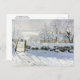 A fine art postcard with the painting, The Magpie (La Pie) (1869) by Claude Monet. A landscape covered in snow and a magpie sitting on the gate. Monet produced about 140 snowscapes in his career, due to an increase in severe winters in France.