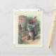 A really pretty vintage image of a cat delivering roses and a sealed letter to a home.