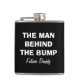 The man behind the bump flask for dad to be. Funny pregnancy gift idea for expectant father. Humourous joke for new baby and pregnant couple. Future daddy humour.