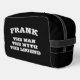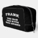 The man myth legend custom black toiletry bag for guys. Bold black and white typography template. Personalise with your own name and humourous quote. Perfect Father's Day and Birthday gifts for dad, husband, brother, uncle, grandpa, friend etc.