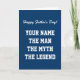 The man the myth the legend Father's day greeting card. Humourous card idea for dad, daddy, grandpa, father etc. Personalizable with name. Funny and cute cards for men. Available in big oversized extra large size. Cool masculine typography.