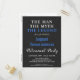 Celebrate your police legend Police Retirement Invitations . Celebrate years of dedicated service, and invite friends and family to your law enforcement retirement party with this Thin Blue Line Flag Police Retirement Invitation. Modern trendy black white and blue design on charcoal grey leather. See our collection for matching police retirement gifts, police retirement party favours, and supplies. COPYRIGHT © 2021 Judy Burrows, Black Dog Art - All Rights Reserved. The Man Myth The Legend Police Retirement Party Invitation Postcard