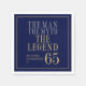 His life has been a great adventure! These fabulous navy blue men's 65th birthday cocktail napkins that say "The Man The Myth The Legend" in a classic font in silver and gold would are perfect for celebrating the special man in your life's 65th birthday. These napkins are trendy, stylish, modern and contemporary. To see your unique napkins select "Personalize this template" and type in your information. It's super easy!