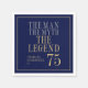 His life has been a great adventure! These fabulous navy blue men's 75th birthday cocktail napkins that say "The Man The Myth The Legend" in a classic font in silver and gold would are perfect for celebrating the special man in your life's 75th birthday. These napkins are trendy, stylish, modern and contemporary. To see your unique napkins select "Personalize this template" and type in your information. It's super easy!