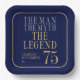 His life has been a great adventure! These fabulous navy blue men's 75th birthday 9" square paper plates that say "The Man The Myth The Legend" in a classic font in silver and gold are perfect for celebrating the man in your life's 75th birthday. These plates are trendy, stylish, modern and contemporary. To see your unique plates select "Personalize this template" and type in your information. It's super easy!