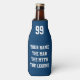 The man the myth the legend bottle / can cooler for men. Cute Fathers Day gift idea. Personalizable jersey number. Funny quote for dad on Father's Day or Birthday. Personalizable text and background colour. Cosy gift idea for manly man cave, tailgate party, sports coach, player. Vintage masculine athletic typography. Keeps beer cool. Mens sports humour. Doubles sided rustic print. The man the myth the legend. Customisable background colour. ie blue. Also fun for husband, uncle, grandpa, son, brother etc. Make your own for basketball, baseball, hockey, volleyball, softball, soccer, rugby, car racing, lacross etc. Also fun for sports themed wedding party.