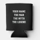 The man the myth the legend can cooler for men. Cute Fathers Day gift idea. Funny quote for dad on Father's Day or Birthday. Personalizable text and background colour. Cosy gift idea for daddys manly man cave. Vintage masculine typography. Keeps beer cool. Mens sports humour. Doubles sided rustic print. The man the myth the legend. Customisable background colour. Also fun for husband, uncle, grandpa, son, brother etc.