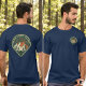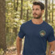Celebrate the legend with this personalized navy blue t-shirt! Featuring a vintage-style mountain and sun patch, it proudly displays "THE MAN. THE MYTH. THE LEGEND." along with "EST. 1975" and initials "H.J.". The design appears as a small logo on the front left chest and a large graphic on the back. Perfect for a birthday gift or for any man who loves the outdoors.