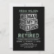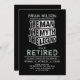 "the Man the Myth the Legend has retired" typography design in sage green, black and white, personalised your own name and party details. Great retirement invitations.